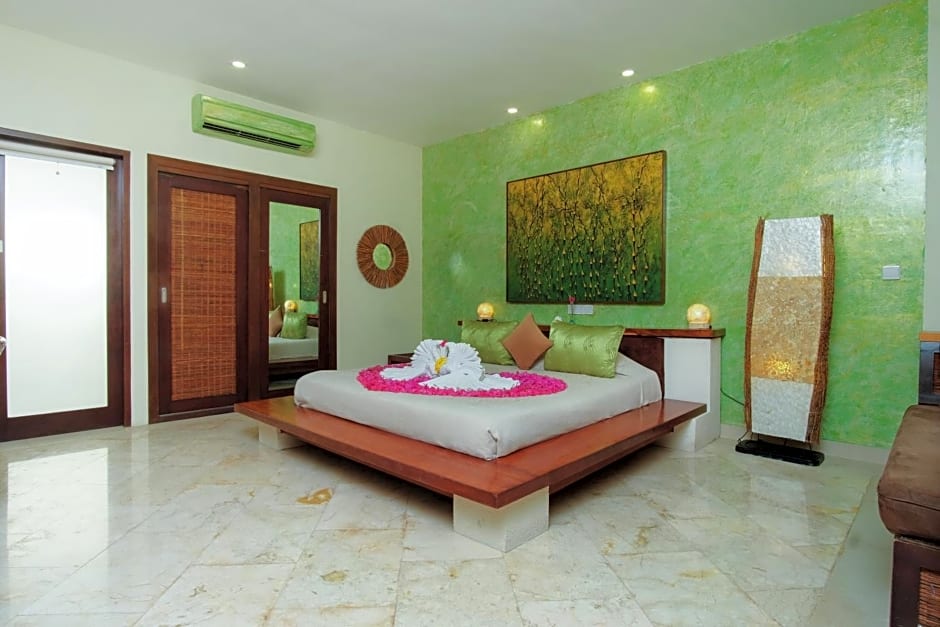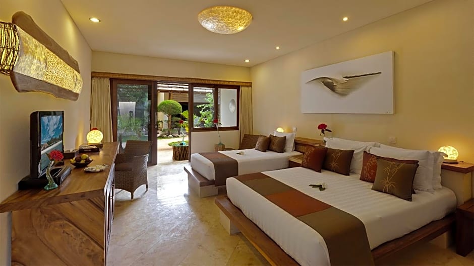 This air-conditioned double room is decorated with solid Suar wood and features a terrace with views of the garden and outdoor furniture. It also features an open bathroom with a shower surrounded by natural stones amid tropical plants. It is fitted with a desk, a flat-screen cable TV and a wardrobe.